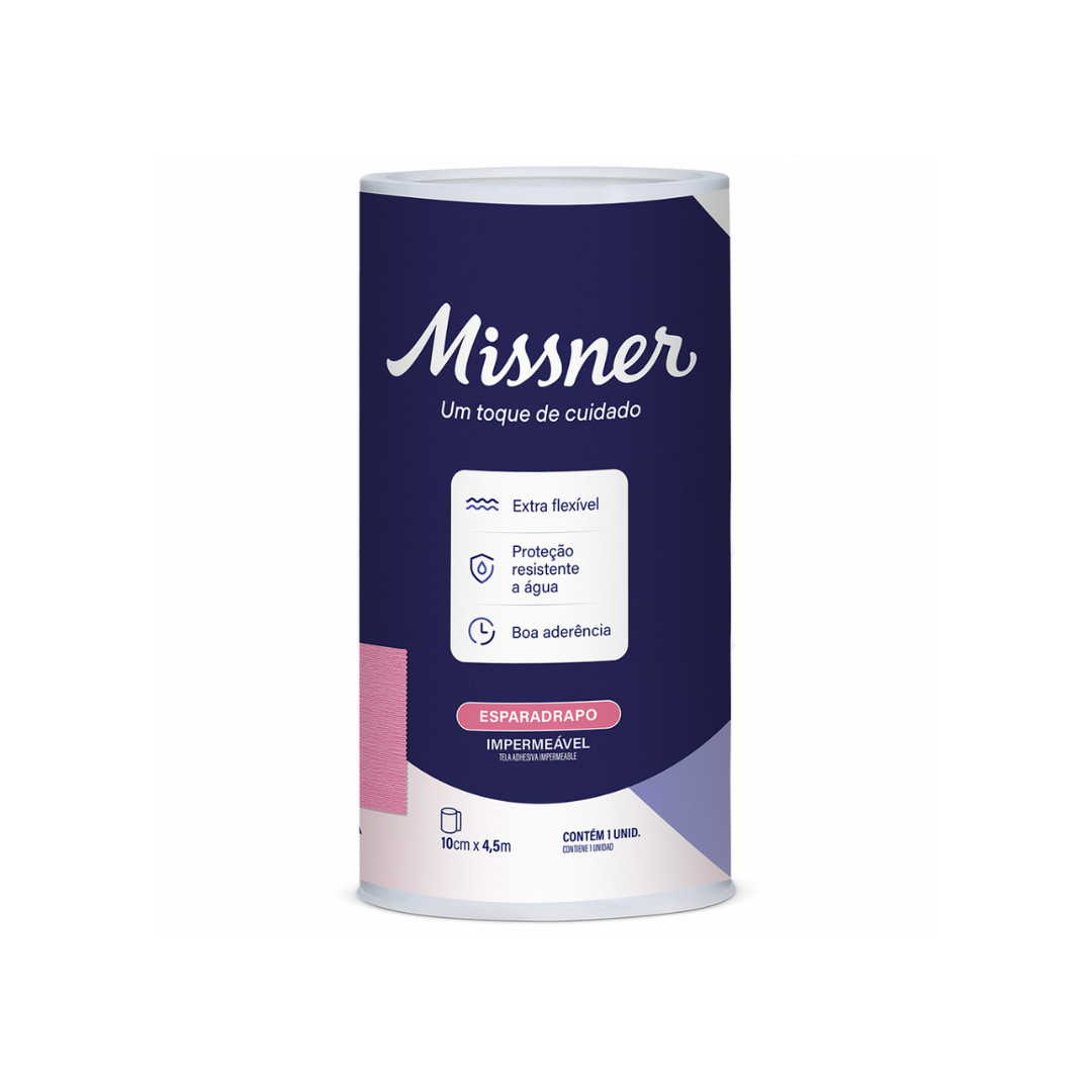 O Esparadrapo Impermeável Rosa Missner oferece a maior largura da categoria (10cm) aliada a uma cor vibrante e moderna. Composto por tecido 100% algodão e adesivo de alta aderência à base de óxido de zinco, é perfeito para coberturas de grandes áreas, fixação de curativos extensos e dispositivos médicos. Sua tecnologia impermeável protege o ferimento contra água e sujeira, enquanto a cor rosa facilita a diferenciação visual em ambientes hospitalares ou torna o cuidado doméstico e infantil mais lúdico.