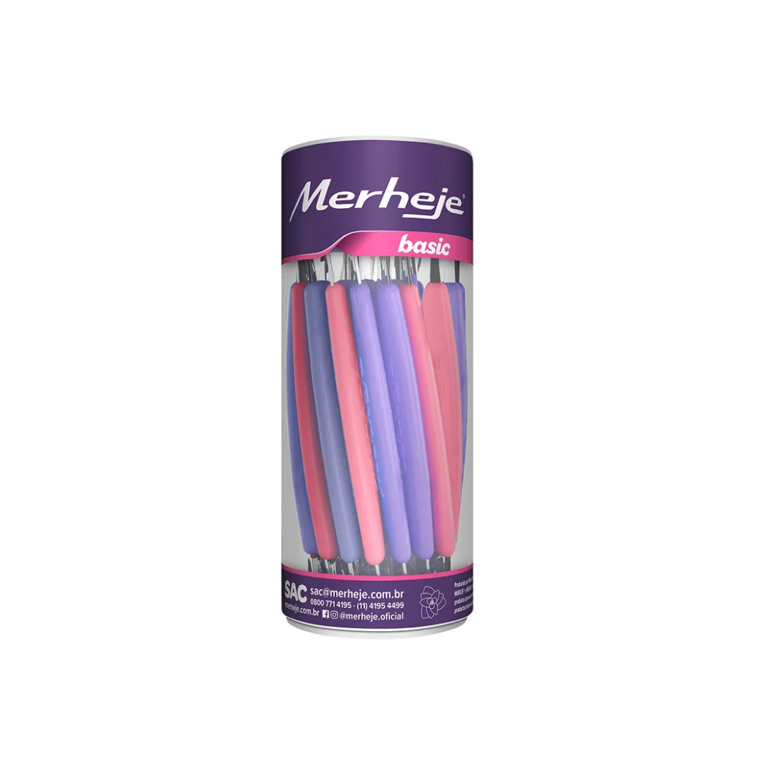 A linha Merheje Basic Mix é reconhecida pela sua versatilidade. O formato em pote expositor é estratégico para o comércio, atraindo a atenção do consumidor pelas cores modernas e facilitando a compra por impulso. Cada ferramenta é projetada para ser leve, funcional e eficiente na rotina de cuidados com as mãos e pés.