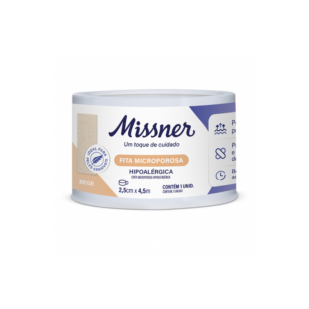 A Fita Microporosa Bege Missner é a solução perfeita para quem busca uma fixação segura, hipoalergênica e extremamente discreta. Desenvolvida para peles sensíveis, ela permite a respiração cutânea e possui uma tonalidade bege que se mistura à cor da pele, sendo ideal para áreas expostas. O rolo de 4,5 metros com 2,5cm de largura é o tamanho mais equilibrado para o uso familiar, garantindo cuidado suave em curativos de rosto, mãos e articulações.