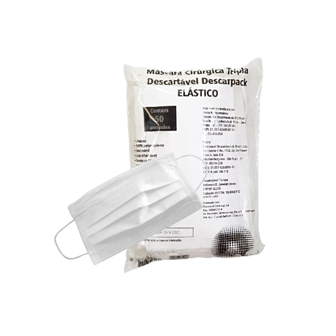 Máscara Desc Branca Tripla C/ Elástico C/ Clip Pct C/50unds