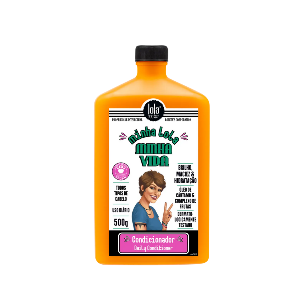 O Condicionador Minha Lola Minha Vida é um tratamento de uso frequente desenvolvido para todos os tipos de cabelo que necessitam de hidratação suave, desembaraço imediato e brilho. Com uma fórmula balanceada rica em Óleo de Cártamo e Extratos Vegetais, ele sela as cutículas capilares, retém a umidade no interior do fio e melhora a maleabilidade sem pesar. Em embalagem de 500g, é o aliado ideal para manter os cabelos macios, saudáveis e radiantes todos os dias.