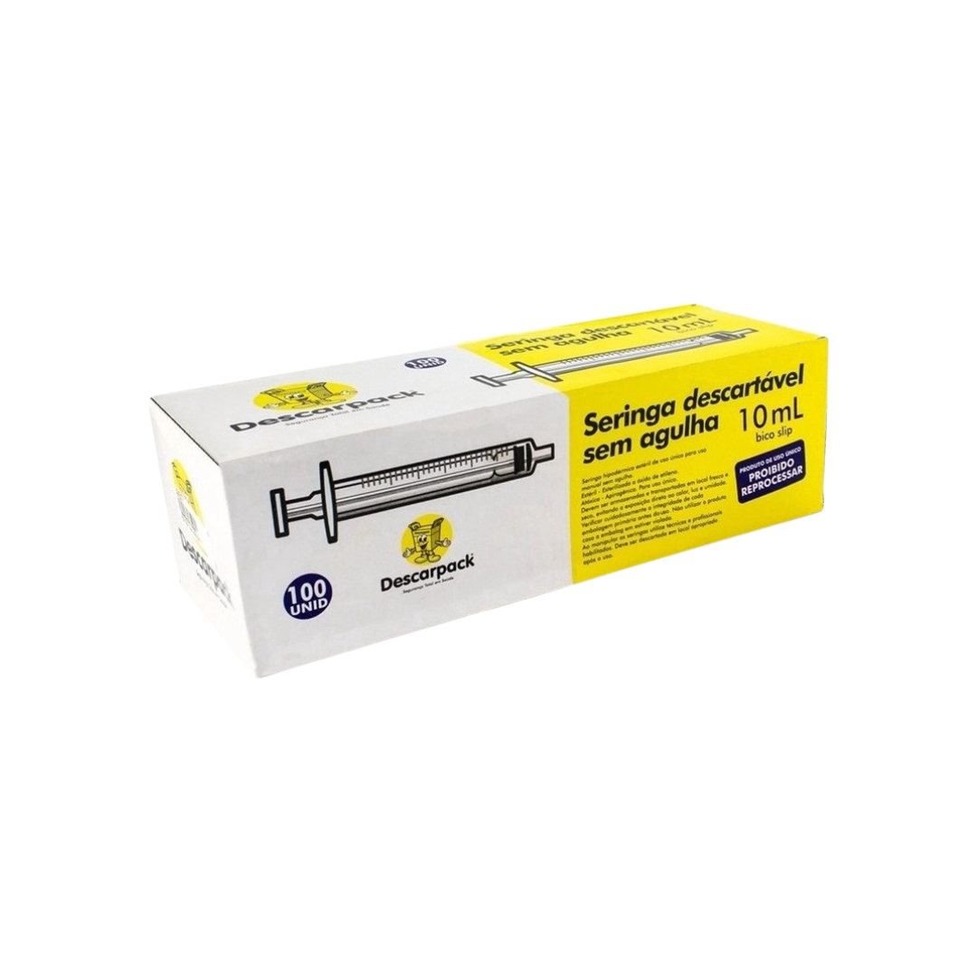 A Seringa 10ml Luer Slip Descarpack é um dispositivo médico estéril, essencial para a aspiração e administração de líquidos em procedimentos de rotina. Com bico do tipo Slip (liso/encaixe), ela garante rapidez e praticidade na conexão com agulhas e dispositivos de infusão por pressão. Fabricada em polipropileno de alta transparência, possui graduação nítida e êmbolo siliconado, proporcionando um deslizamento suave e uma dosagem precisa de medicamentos.