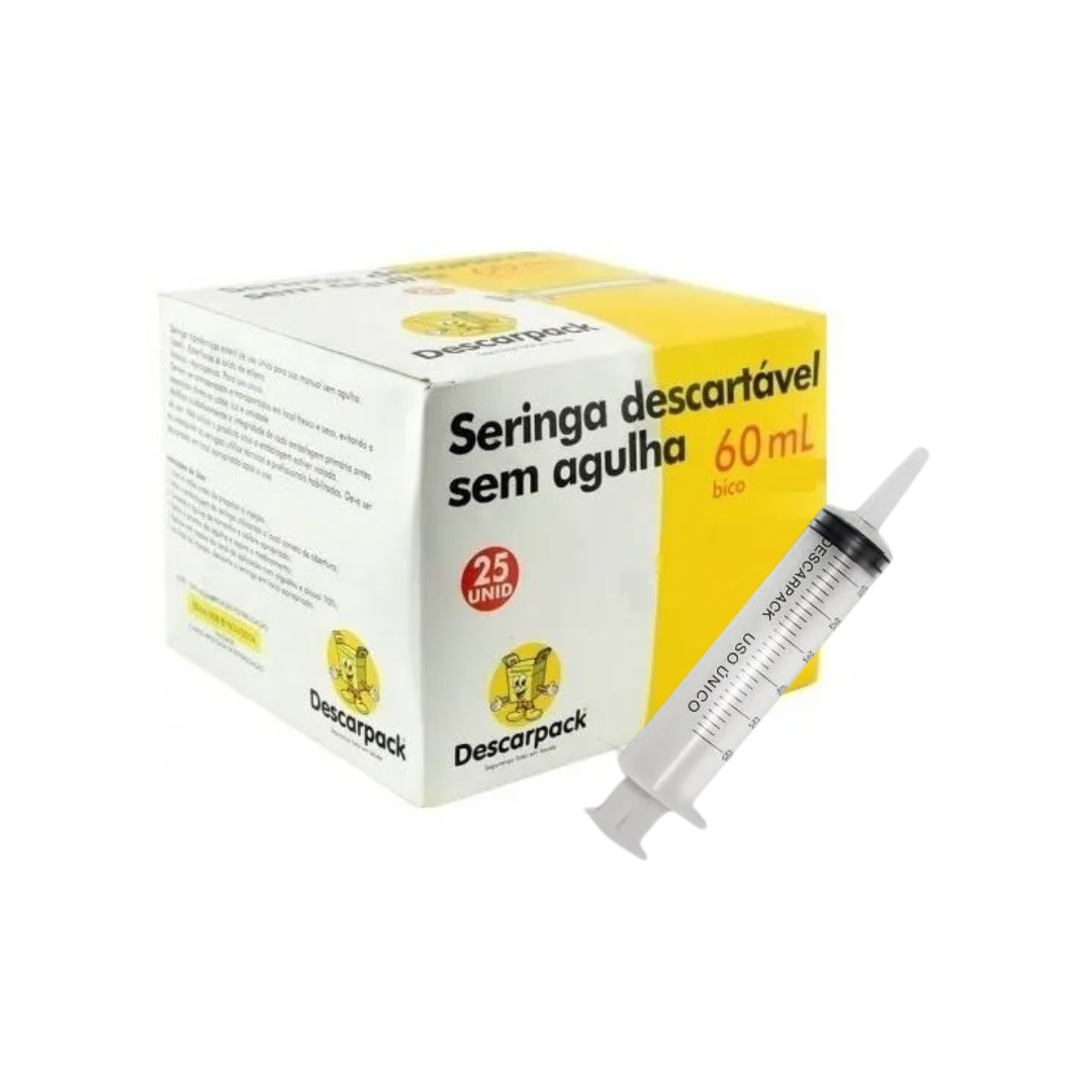 A Seringa de 60ml com Bico Cateter da Descarpack é indispensável para pacientes que dependem de nutrição por sonda. Ao contrário das seringas comuns, o bico cateter é mais longo e largo, o que evita o entupimento por dietas mais densas e garante que a conexão com a sonda não se solte durante a administração.