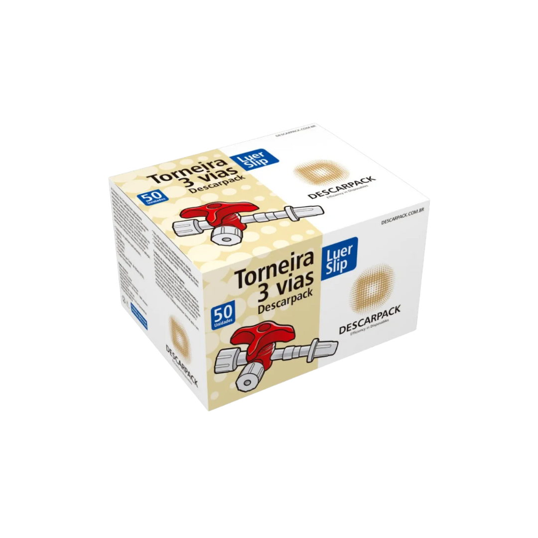 A Torneira 3 Vias Luer Slip Descarpack é um dispositivo estéril projetado para duplicar o acesso venoso e controlar o fluxo de infusões. Através de um manípulo giratório com rotação de 360°, permite ao profissional abrir, fechar ou direcionar a passagem de medicamentos entre três portas distintas. Seu conector tipo Luer Slip (encaixe por pressão) facilita o manuseio rápido em rotinas hospitalares, garantindo um sistema estanque e seguro para a administração de soluções parenterais.